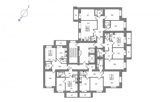 4-комнатная, 101.1 м², №191 , Без отделки