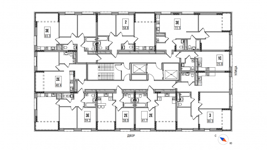 2-комнатная, 42.2 м², №123 , Без отделки