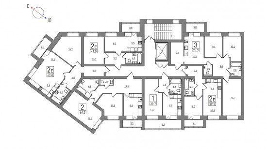 3-комнатная, 75.3 м², №100 , Без отделки