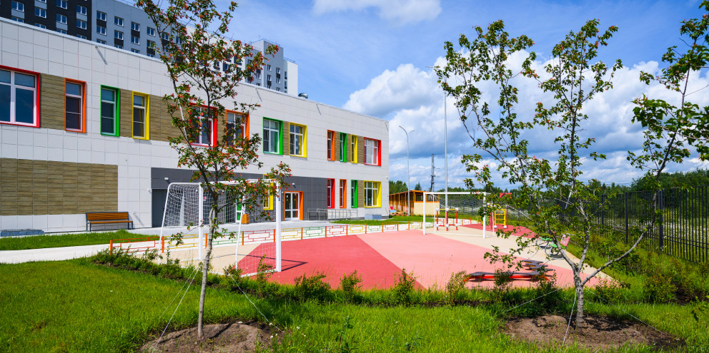 Новый уютный и современный детский сад расположен на территории жилого комплекса. КСМ построил детский сад с большой заботой и вниманием к деталям: здесь есть площадки для занятий спортом на улице, безопасные игровые зоны, музыкальный и физкультурный залы - всё для комфорта родителей и малышей.Детский сад на территории ЖК
