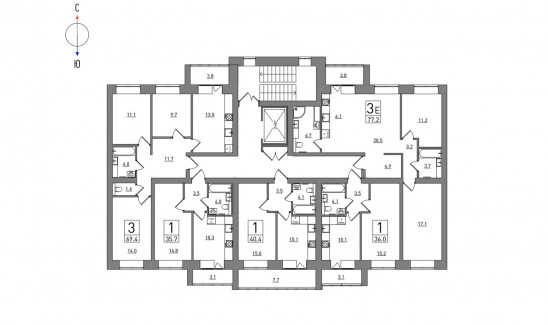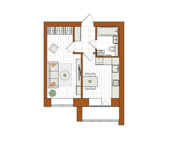 1-комнатная, 38.5 м²
