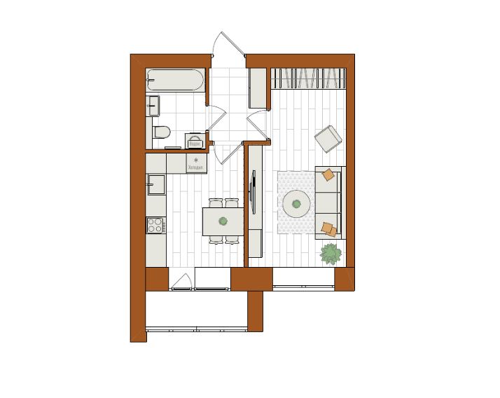 1-комнатная, 38.5 м²
