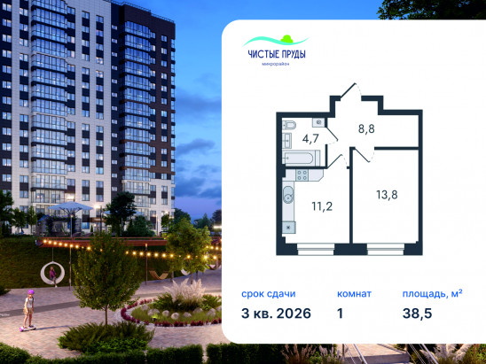 - № 109 Проект Чистые пруды Отделка Без отделки Этаж 13 Скидка до -30% на чистовую отделку Семейная ипотека от 3,5% Базовая ипотека от 15,7%