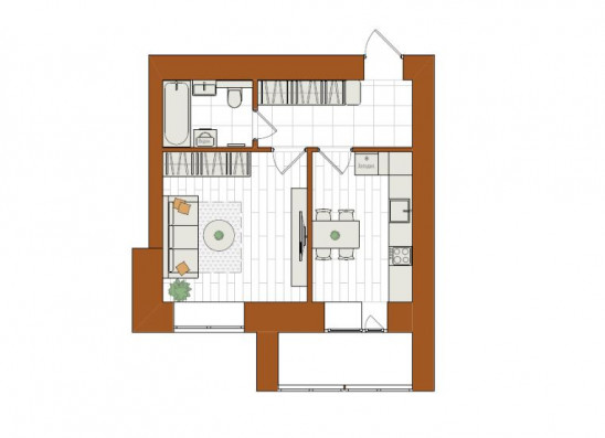 1-комнатная, 44.8 м²