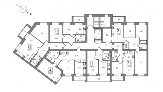 1-комнатная, 40.4 м²