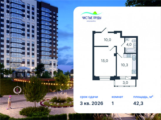 Общая площадь42,3 м²