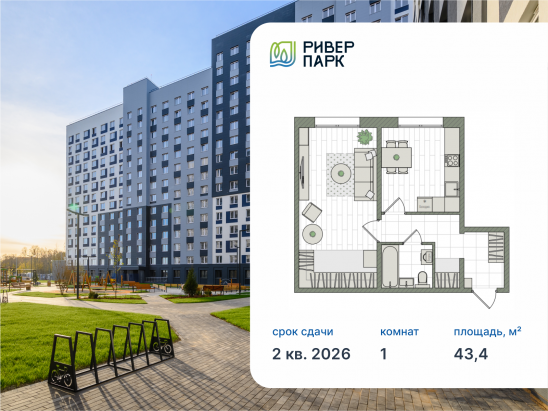 1-комнатная, 43.4 м²