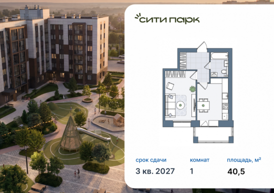 1-комнатная, 40.5 м²