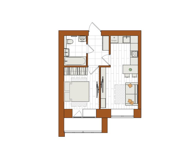 Евро 2-комнатная, 36 м²