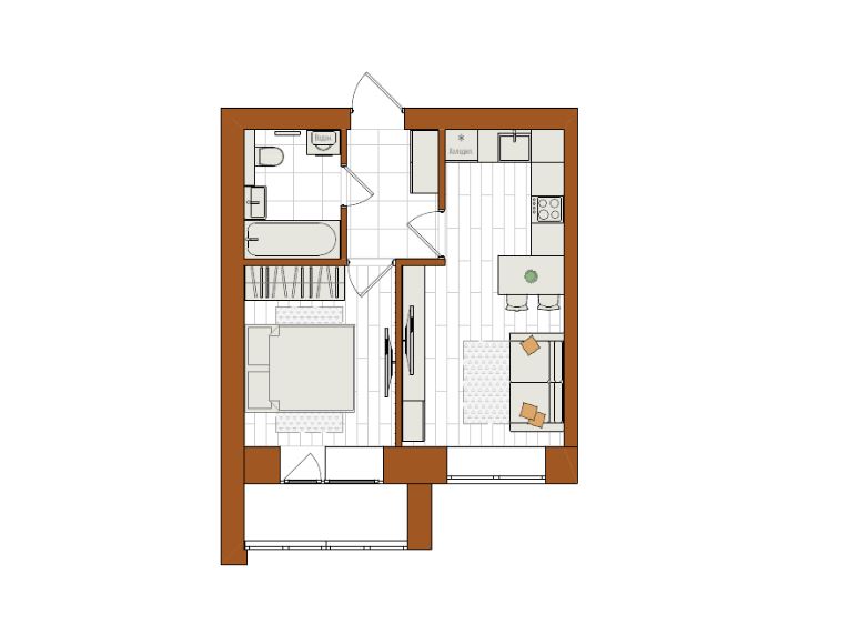 Евро 2-комнатная, 36 м²