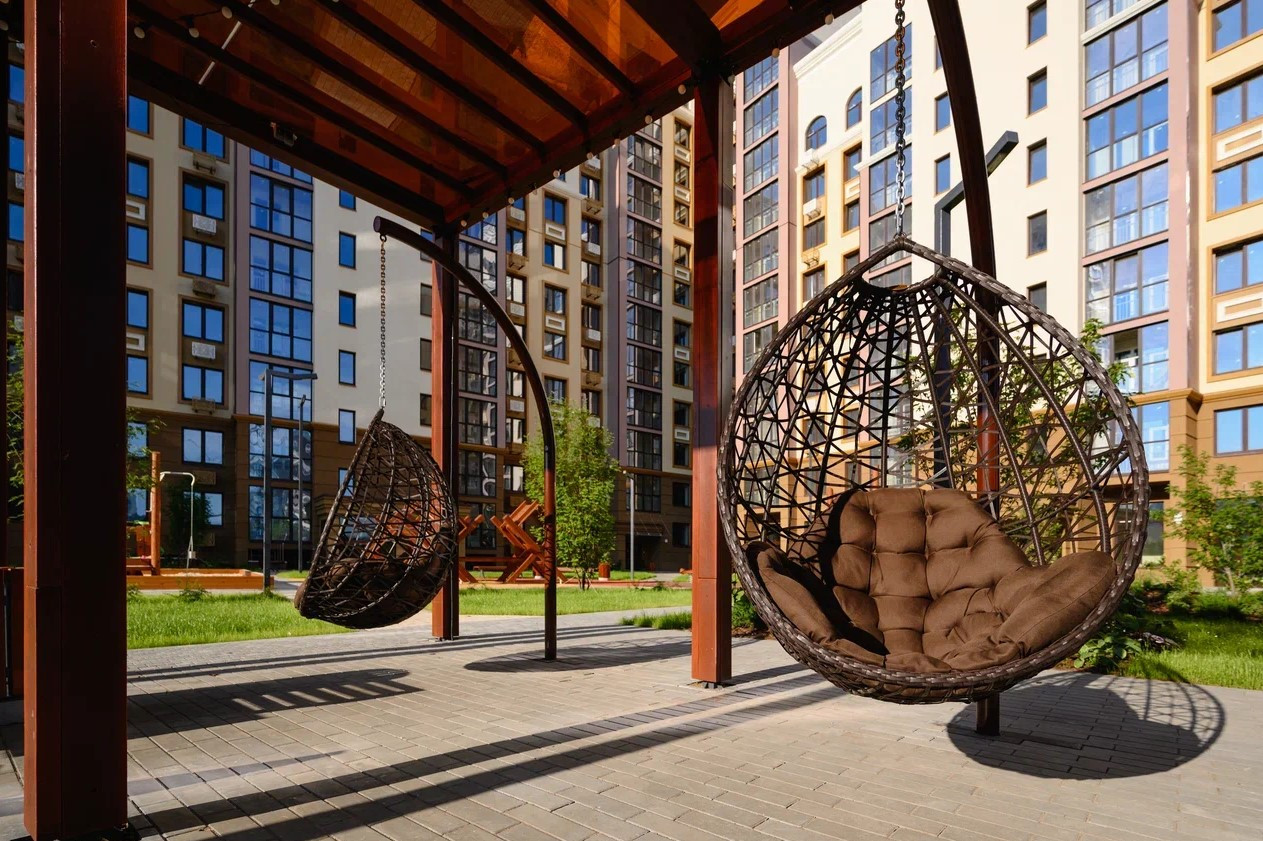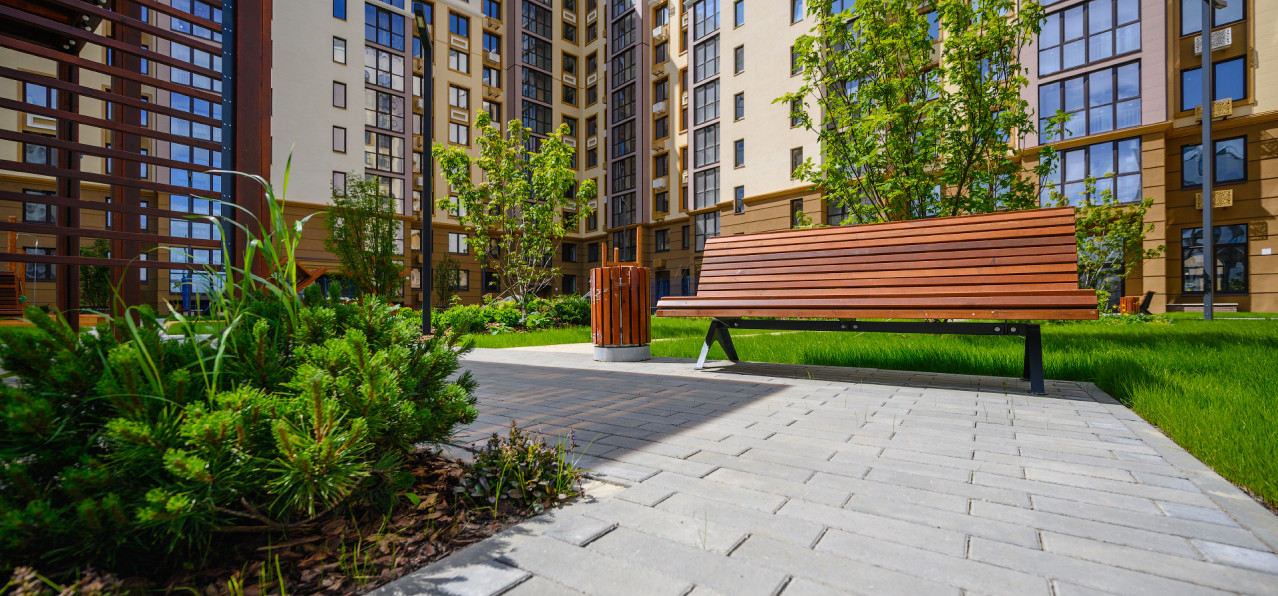 Двор без машин станет центром притяжения для всех жителей. Здесь предусмотрена детская площадка, зона для занятий спортом и воркаутом и места для тихого отдыха. Доступ во двор будет только у жителей парк-квартала и управляющей компании. Ваш двор только в вашем распоряжении.Двор-парк -