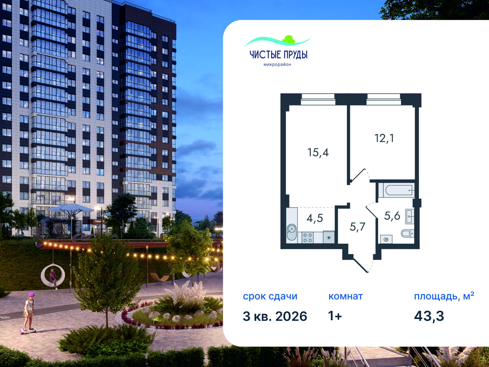 - № 416 Проект Чистые пруды Отделка Без отделки Этаж 15 Скидка до -30% на чистовую отделку Семейная ипотека от 3,5% Базовая ипотека от 15,7%