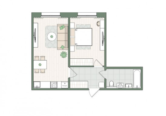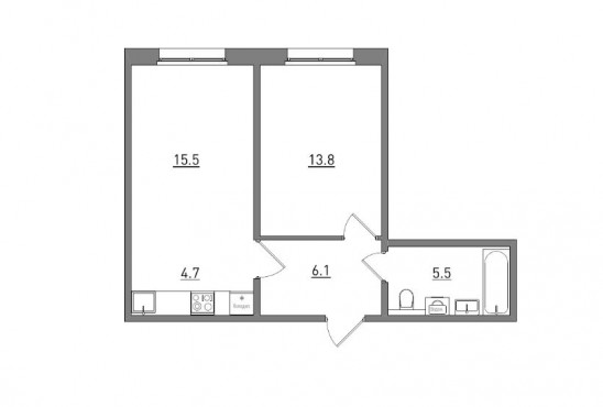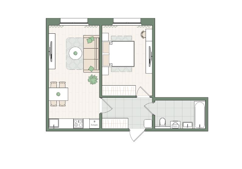 Евро 2-комнатная, 45.6 м²