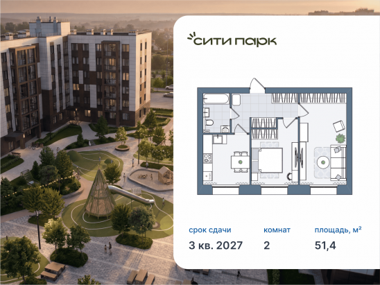 2-комнатная, 51.4 м²