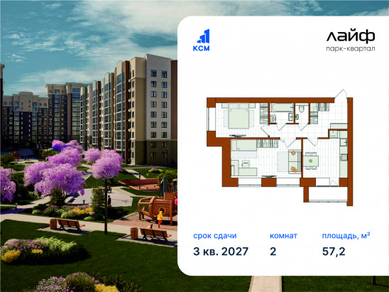 2-комнатная, 57.2 м²