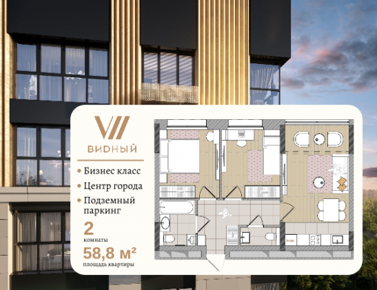 - № 2 Проект Видный Отделка Без отделки Этаж 2 Рассрочка 0% Квартирный трейд-ин Кешбэк до 500 тысяч рублей с картой новосёла!