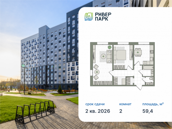 - № 422 Проект РИВЕР ПАРК Отделка Квартира с отделкой Этаж 9 Скидка до -30% на чистовую отделку Семейная ипотека от 3,5% Базовая ипотека от 15,7%