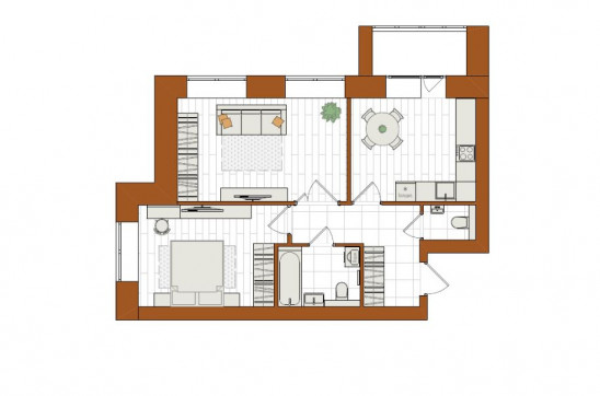 2-комнатная, 57 м²