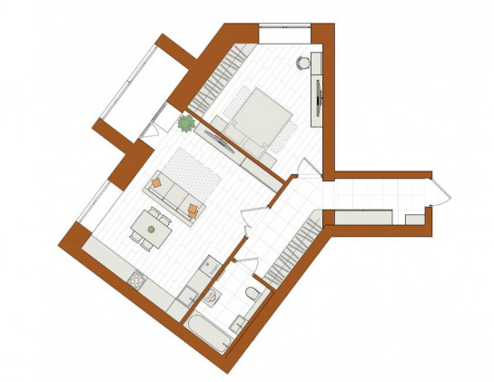 2-комнатная, 57 м²