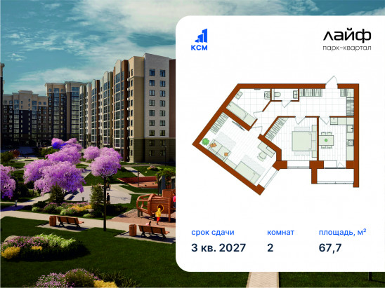 2-комнатная, 67.7 м²