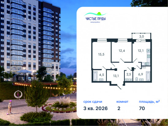 - № 298 Проект Чистые пруды Отделка Без отделки Этаж 3 Скидка до -30% на чистовую отделку Семейная ипотека от 3,5% Базовая ипотека от 15,7%