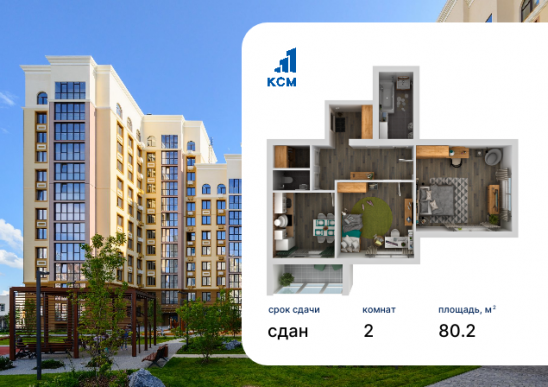 2-комнатная, 80.2 м²
