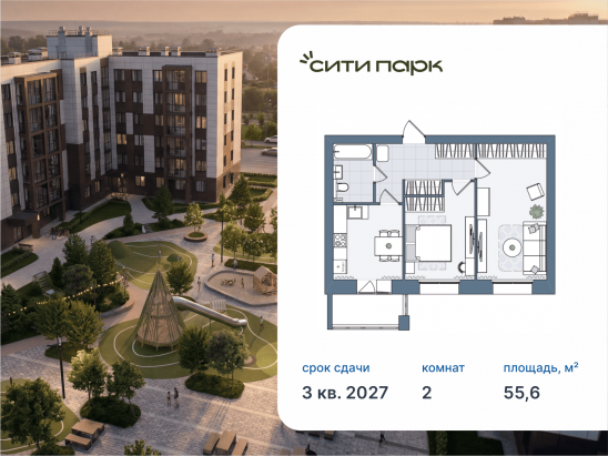 2-комнатная, 55.6 м²