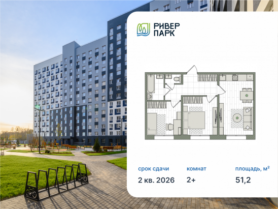 - № 568 Проект РИВЕР ПАРК Отделка Без отделки Этаж 11 Скидка до -30% на чистовую отделку Семейная ипотека от 3,5% Базовая ипотека от 15,7%