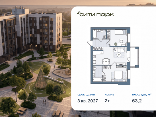 - № 13 Проект Сити Парк Отделка Без отделки Этаж 3 Приведи друга — получи до 30 000 рублей! Квартирный обмен