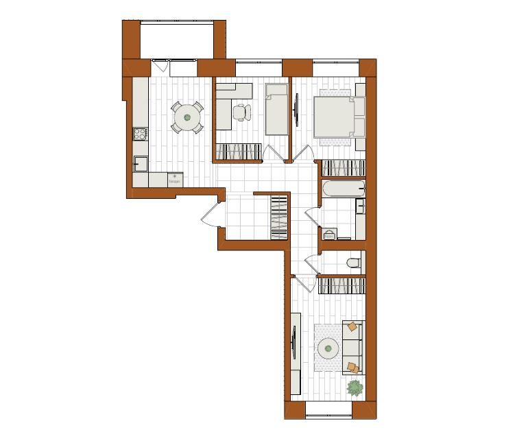 3-комнатная, 69.6 м²