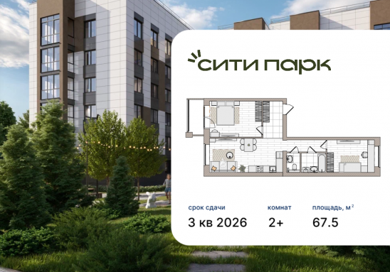 - № 18 Проект Сити Парк Отделка Без отделки Этаж 3 Скидка до -30% на чистовую отделку Квартирный обмен Семейная ипотека от 3,5% Базовая ипотека от 15,7%