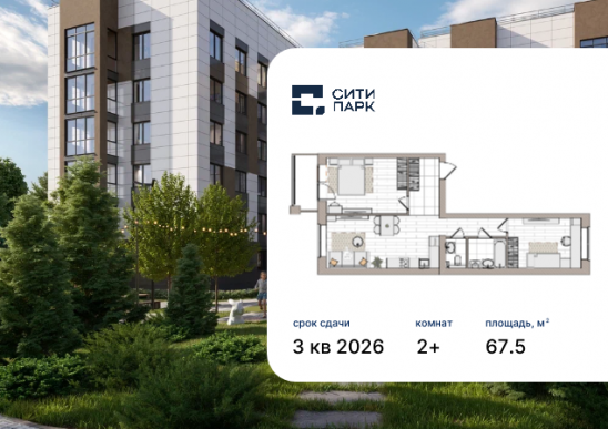 - № 39 Проект Сити Парк Отделка Без отделки Этаж 6 Скидка до -30% на чистовую отделку Семейная ипотека от 3,5% Базовая ипотека от 15,7%