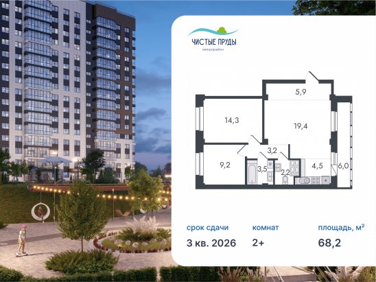 Общая площадь68,2 м²