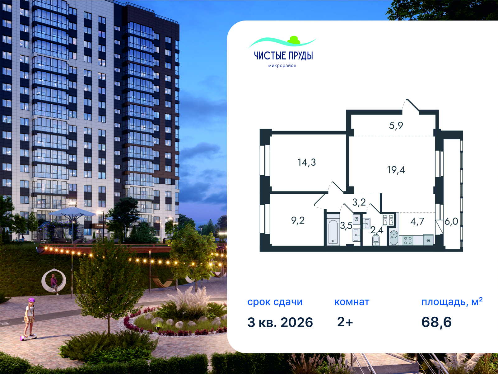 Общая площадь68,6 м²