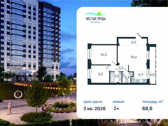 - № 194 Проект Чистые пруды Отделка Без отделки Этаж 9 Скидка до -30% на чистовую отделку Семейная ипотека от 3,5% Базовая ипотека от 15,7%
