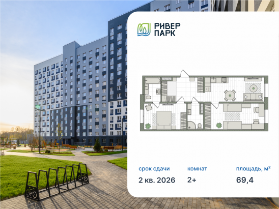 - № 436 Проект РИВЕР ПАРК Отделка Без отделки Этаж 11 Скидка до -30% на чистовую отделку Семейная ипотека от 3,5% Базовая ипотека от 15,7%