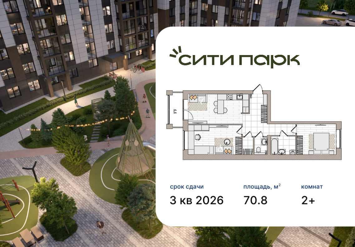 - № 21 Проект Сити Парк Отделка Без отделки Этаж 4 Скидка до -30% на чистовую отделку Квартирный обмен Семейная ипотека от 3,5% Базовая ипотека от 15,7%