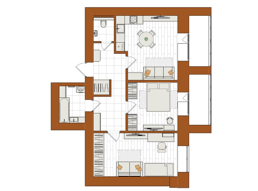 3-комнатная, 69.6 м²