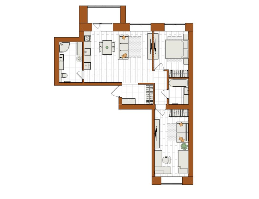 3-комнатная, 69.6 м²