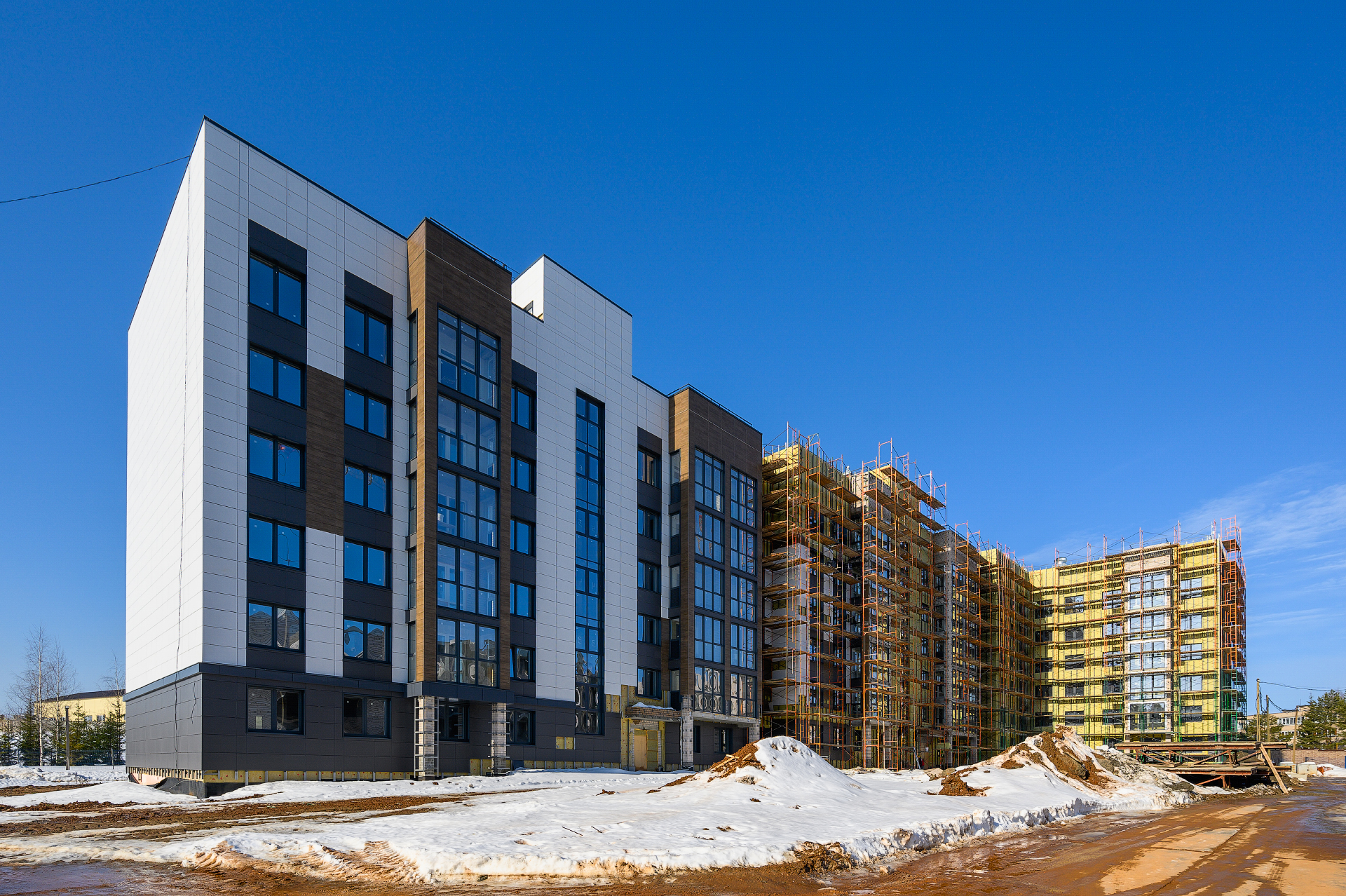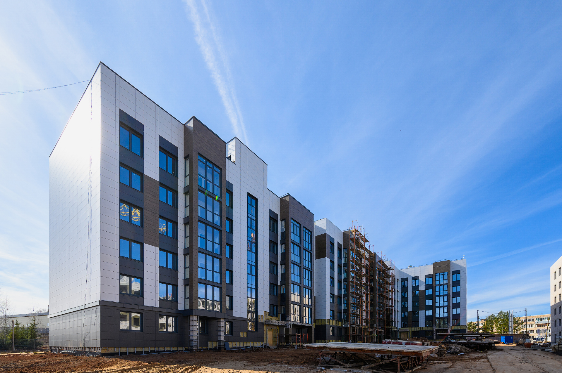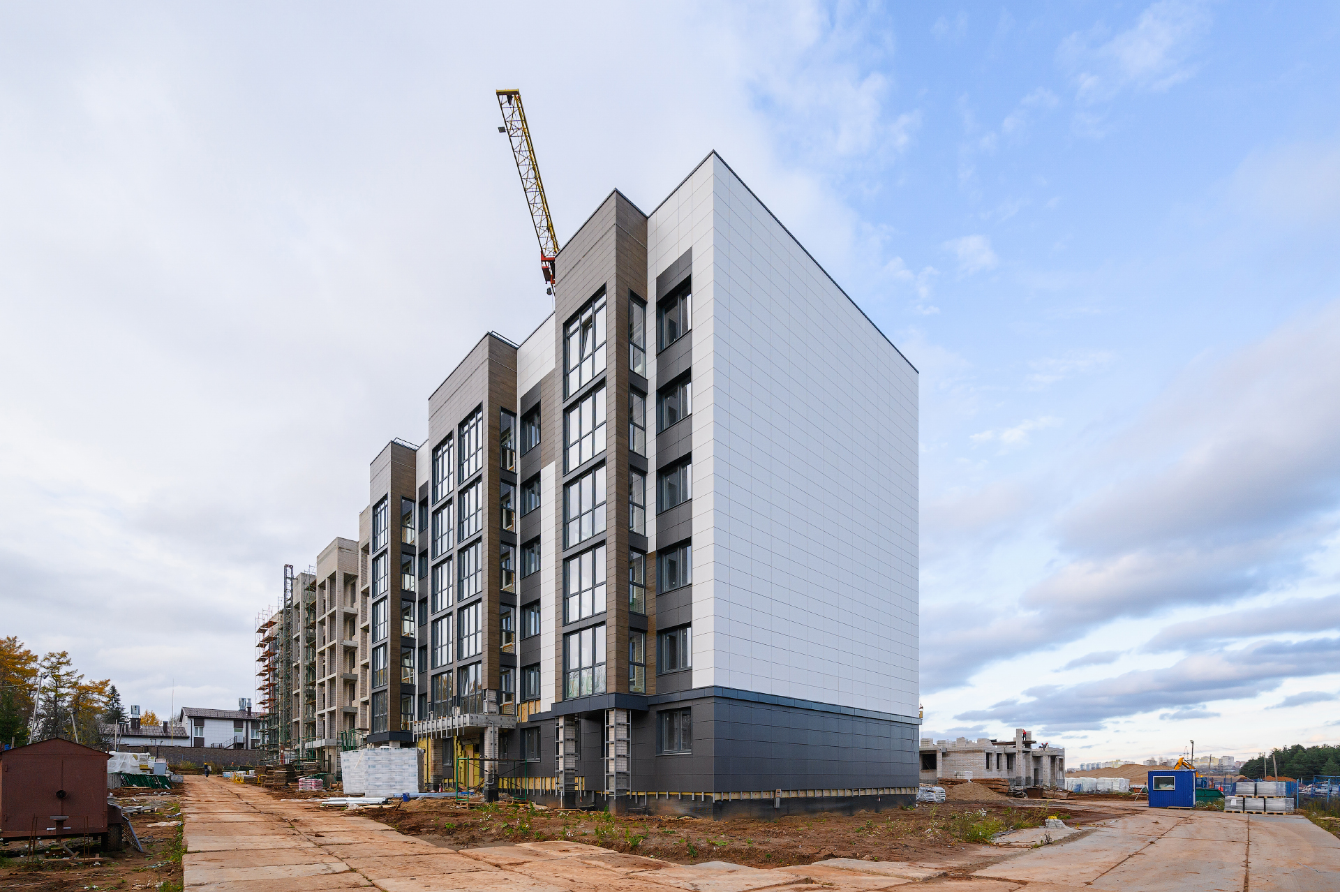 АрхитектураВ основе архитектуры комплекса — гармония современного стиля и функциональности. Единая концепция фасадных решений отличается природными оттенками и современными формами, а придомовая территория — обилием зелени и продуманным благоустройством. Архитекторы сосредоточились на том, чтобы все пространства были наполнены светом и воздухом: этого получилось достичь за счёт средне этажной застройки. Виды из окон квартир станут естественным продолжением интерьера: пейзаж меняется в зависимости от стороны света и этажа — остается только выбирать, хотите ли вы любоваться лесными массивами или наблюдать за детьми в тихом зелёном дворе. В ландшафте двора появятся цветники, кустарники и деревья, гармонично вписанные в общую концепцию проекта, а также игровые площадки для детей и места отдыха для взрослых.