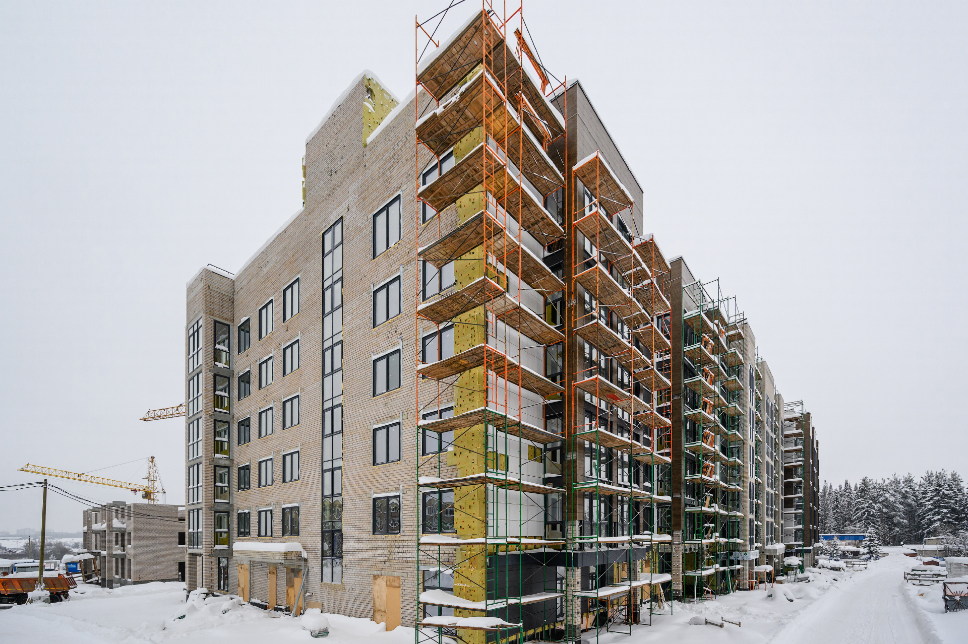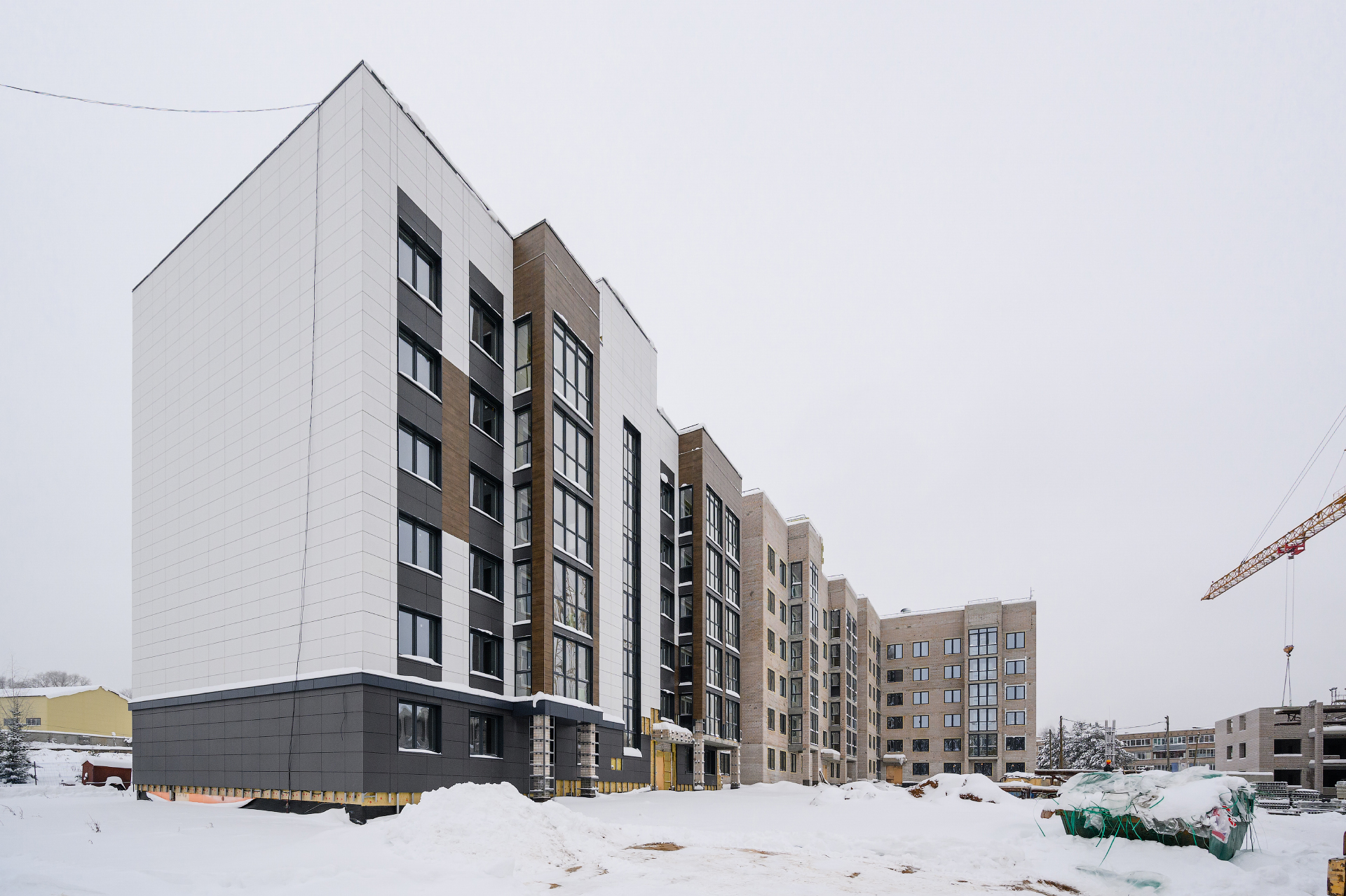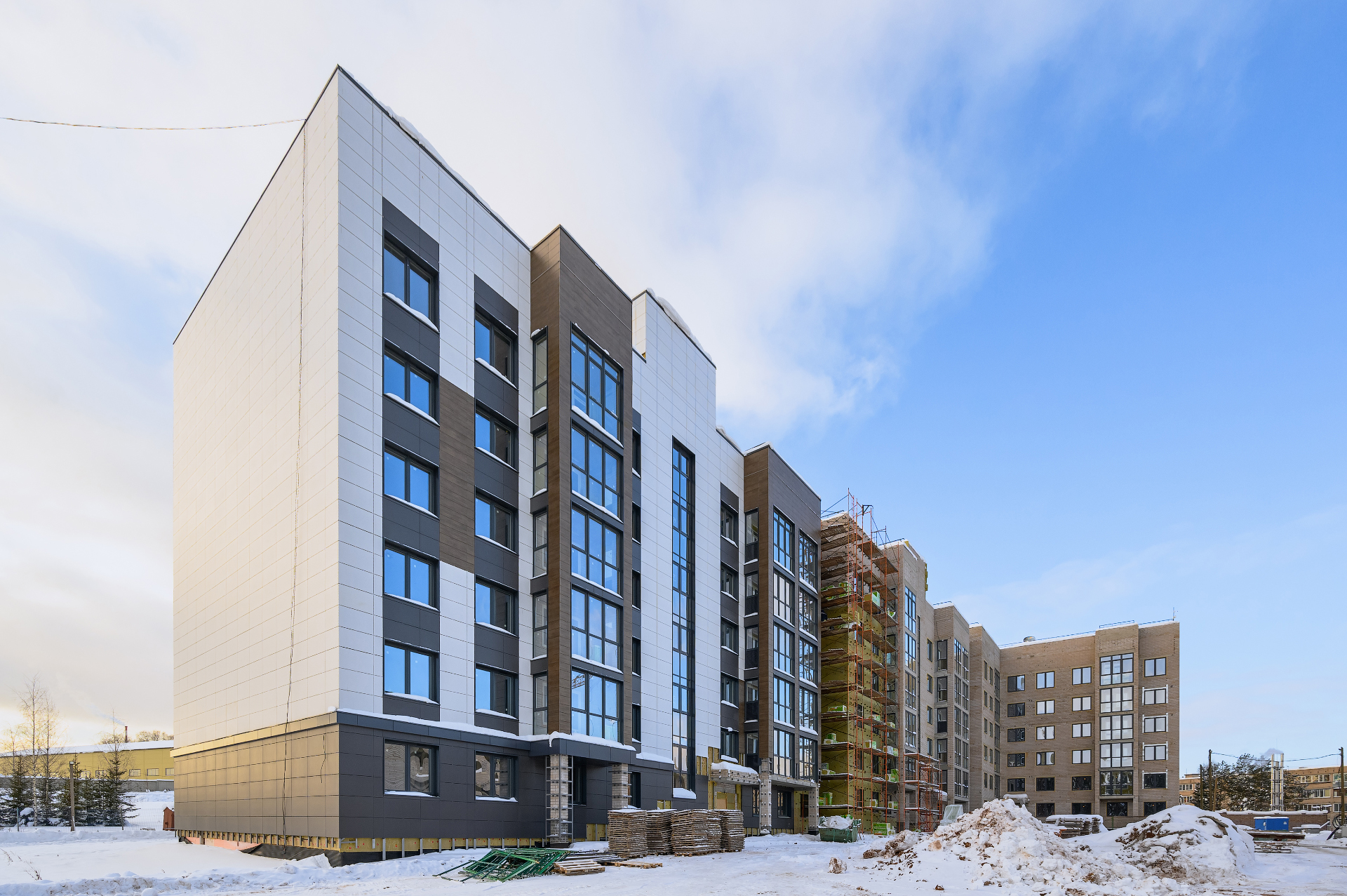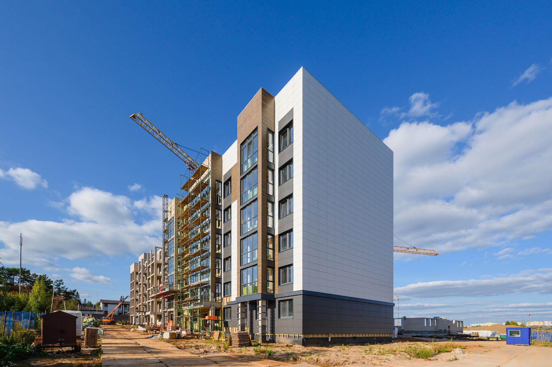 АрхитектураВ основе архитектуры комплекса — гармония современного стиля и функциональности. Единая концепция фасадных решений отличается природными оттенками и современными формами, а придомовая территория — обилием зелени и продуманным благоустройством. Архитекторы сосредоточились на том, чтобы все пространства были наполнены светом и воздухом: этого получилось достичь за счёт средне этажной застройки. Виды из окон квартир станут естественным продолжением интерьера: пейзаж меняется в зависимости от стороны света и этажа — остается только выбирать, хотите ли вы любоваться лесными массивами или наблюдать за детьми в тихом зелёном дворе. В ландшафте двора появятся цветники, кустарники и деревья, гармонично вписанные в общую концепцию проекта, а также игровые площадки для детей и места отдыха для взрослых.