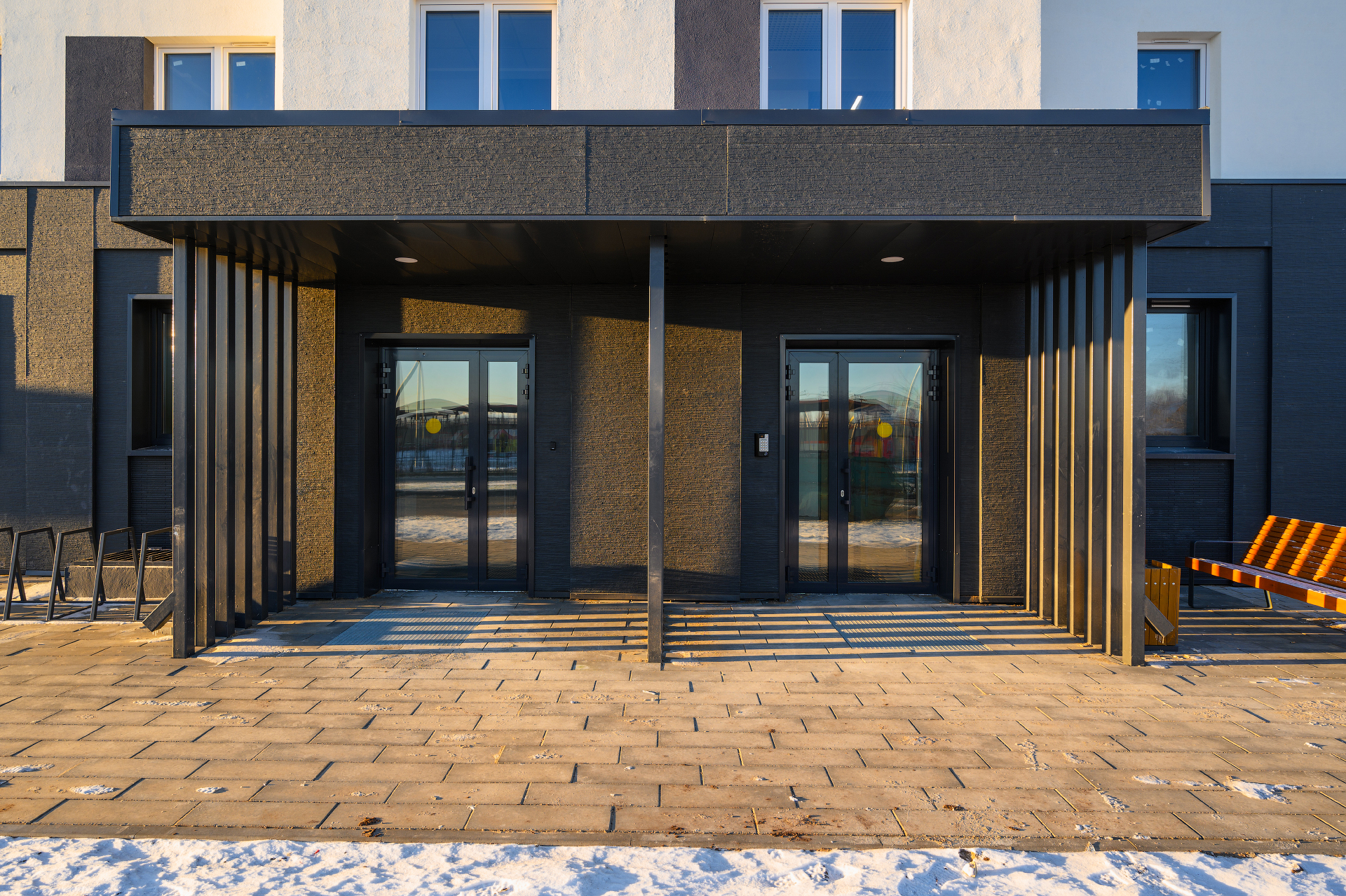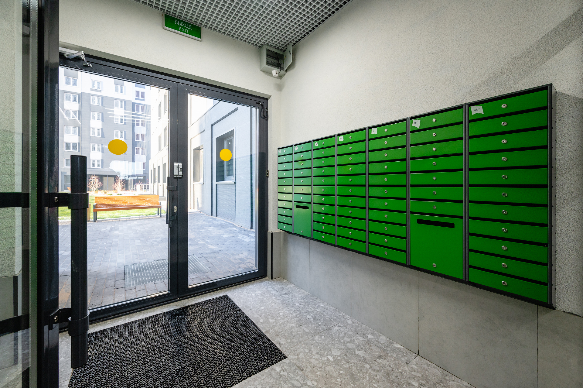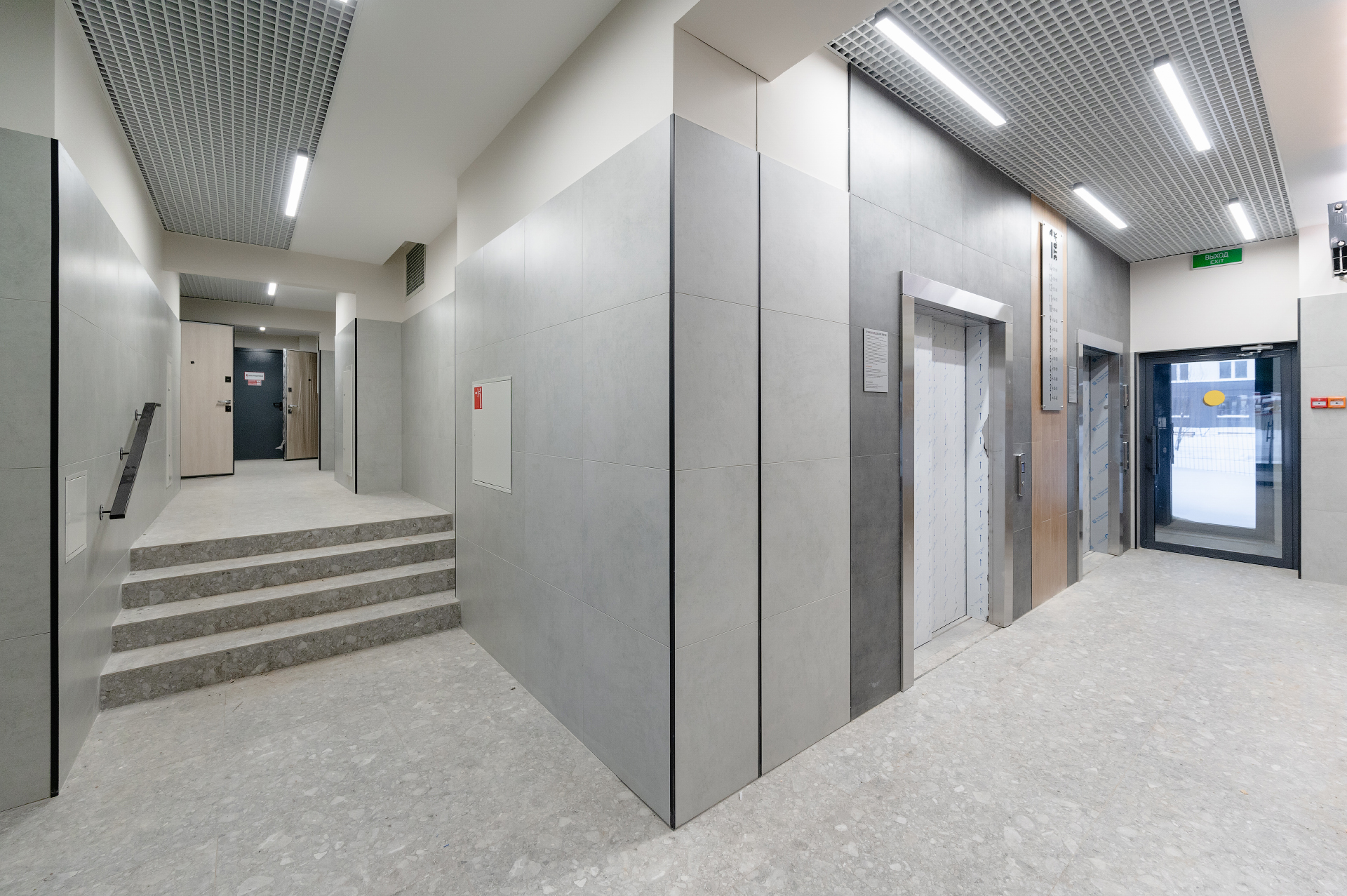 Комфорт современных домовДомВ доме предусмотрены сквозные подъезды с уровня земли. Это удобно мамам с колясками, детям, пожилым и людям с ограничениями по здоровью. Зайти можно как со стороны улицы, так и со стороны двора. Входные группы стеклянные, за счет этого холл наполняется естественным солнечным светом. При входе в подъезд установлены умные домофоны: вы можете открыть дверь при помощи мобильного приложения на своем смартфоне или посмотреть, кто к вам пришел. Подъезды встречают лаконичным и современным интерьером. На первых этажах расположены колясочные, в которых можно хранить детский транспорт и небольшой спортивный инвентарь. Возле лифта установлены навигационные таблички с расположением квартир: курьеры и гости быстро найдут нужный этаж.